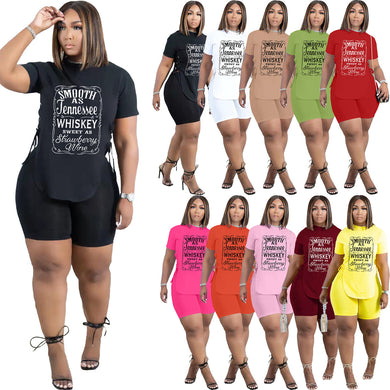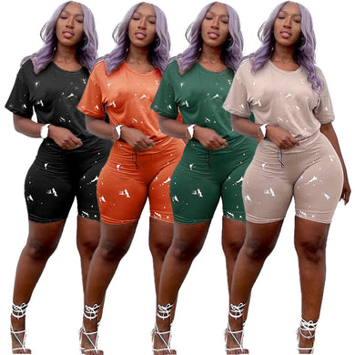 Letter printed camouflage short sleeved shorts set AY2891