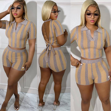 Fashion striped shorts set AY2825