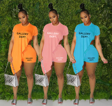 Solid color printed irregular two-piece set AY2920