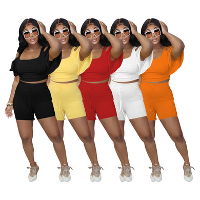 Sexy off shoulder ruffled sleeve shorts set AY2818