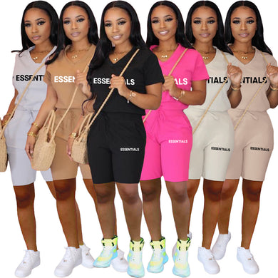 Solid color short sleeved shorts work casual two-piece set AY2843