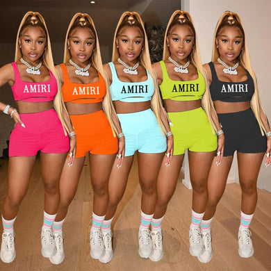 Fashion letter round neck short sleeve shorts suit AY2676