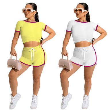 Fashion Solid Color Side Stripe Top Shorts Set(AY2293)