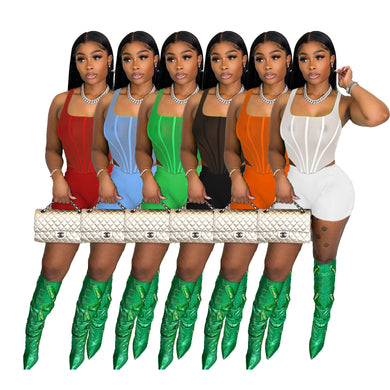 Solid color sleeveless mesh vest two-piece set AY2655