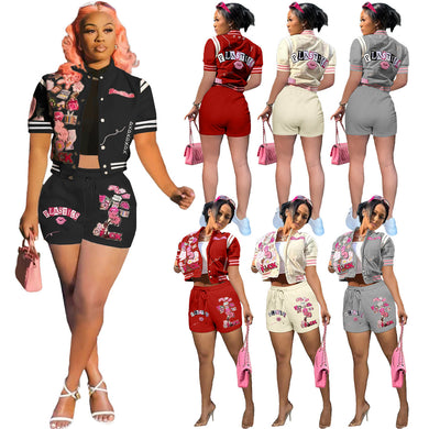 Fashion casual printed baseball suit with short sleeve AY2679