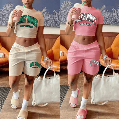Letter Print Short Sleeve Casual Suit(AY2277)