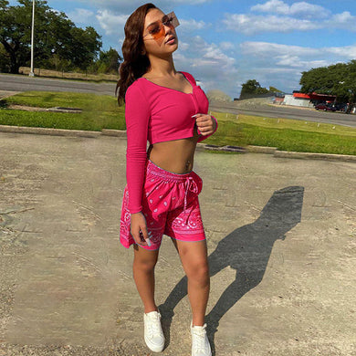 Fashion printed patchwork shorts set AY2744