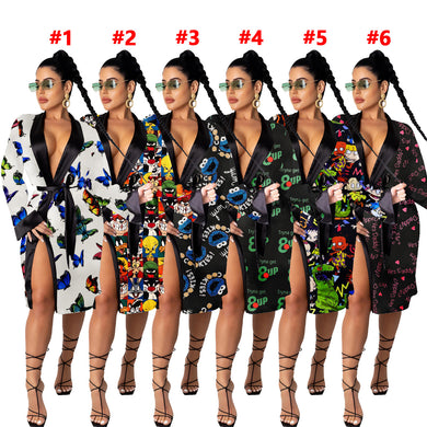 Christmas print lace-up bathrobe with long sleeves and thick home wear Autumn/Winter AY2578