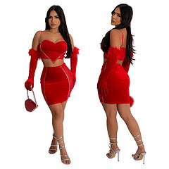 Sexy short skirt diamond set (including gloves) AY3337